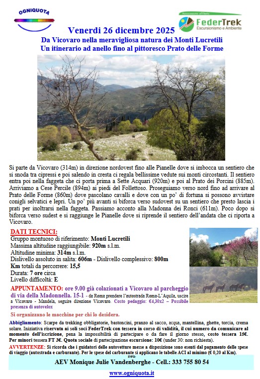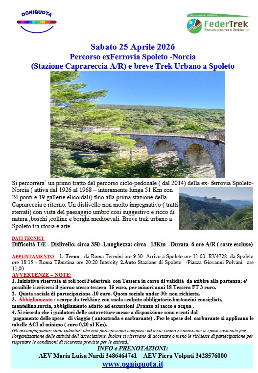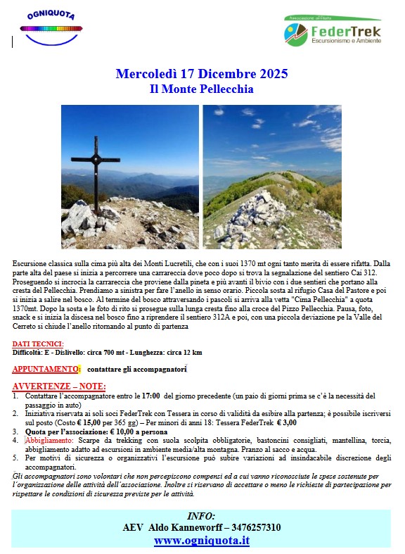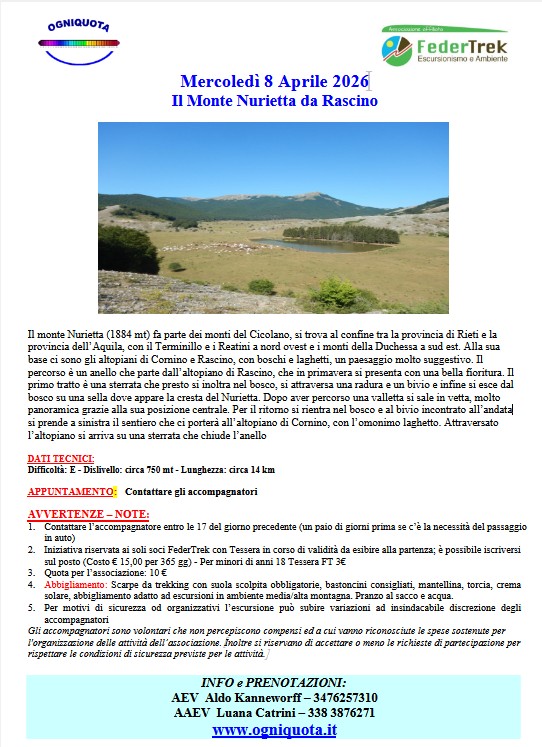 Si ricorda che le uscite si effettuano con i mezzi propri dei partecipanti e le spese di viaggio