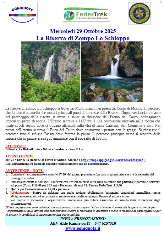 Si ricorda che le uscite si effettuano con i mezzi propri dei partecipanti e le spese di viaggio vengono ripartite tra i passeggeri, con esclusione del conducente.