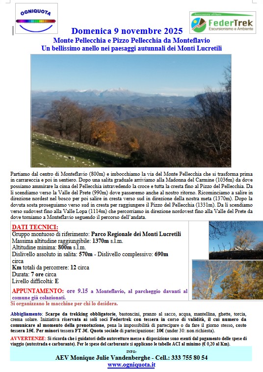 Domenica 9 NovembreMonte e Pizzo Pellecchia