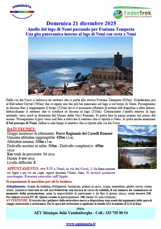 Prenotare telefonando all'accompagnatore entro sabato alle 13 !